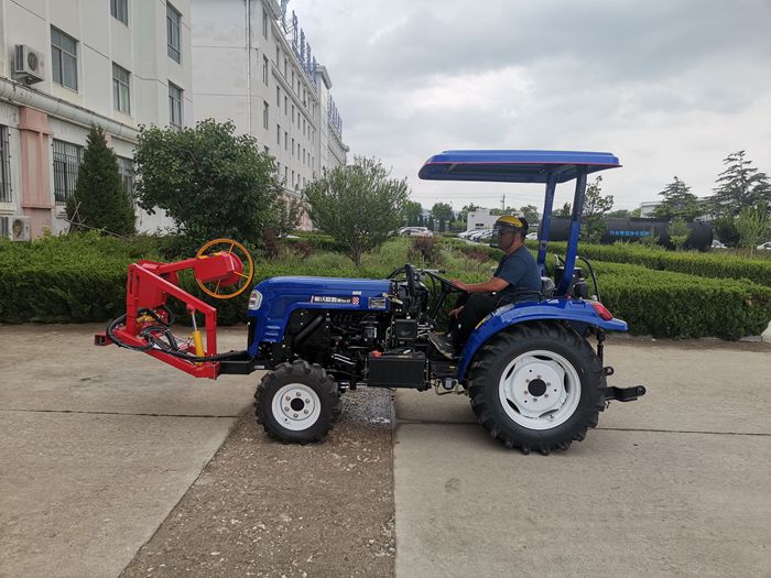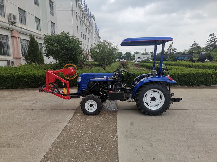 The obstacle avoidance mower under fruit trees is a fully hydraulic drive mower with simple structure and convenient operation, which is developed by Zhongyi Company to solve the problem of the lack of corresponding equipment for mowing under fruit trees in modern orchards. All movements of the machine are hydraulically driven and controlled. The operator can flexibly adjust the cutting angle and cutter head height according to different working conditions and landforms; The obstacle avoidance mechanism adopts a spring mechanism with adjustable tension force+a roller mechanism, which is simple in structure and not easy to be damaged; Two groups of 8 flail knives are used for the cutter part, which has high cutting efficiency and is not easy to wrap grass; The mower is installed in front of the tractor, which is convenient for the operator to observe the working conditions ahead and flexibly adjust the state of the mower.